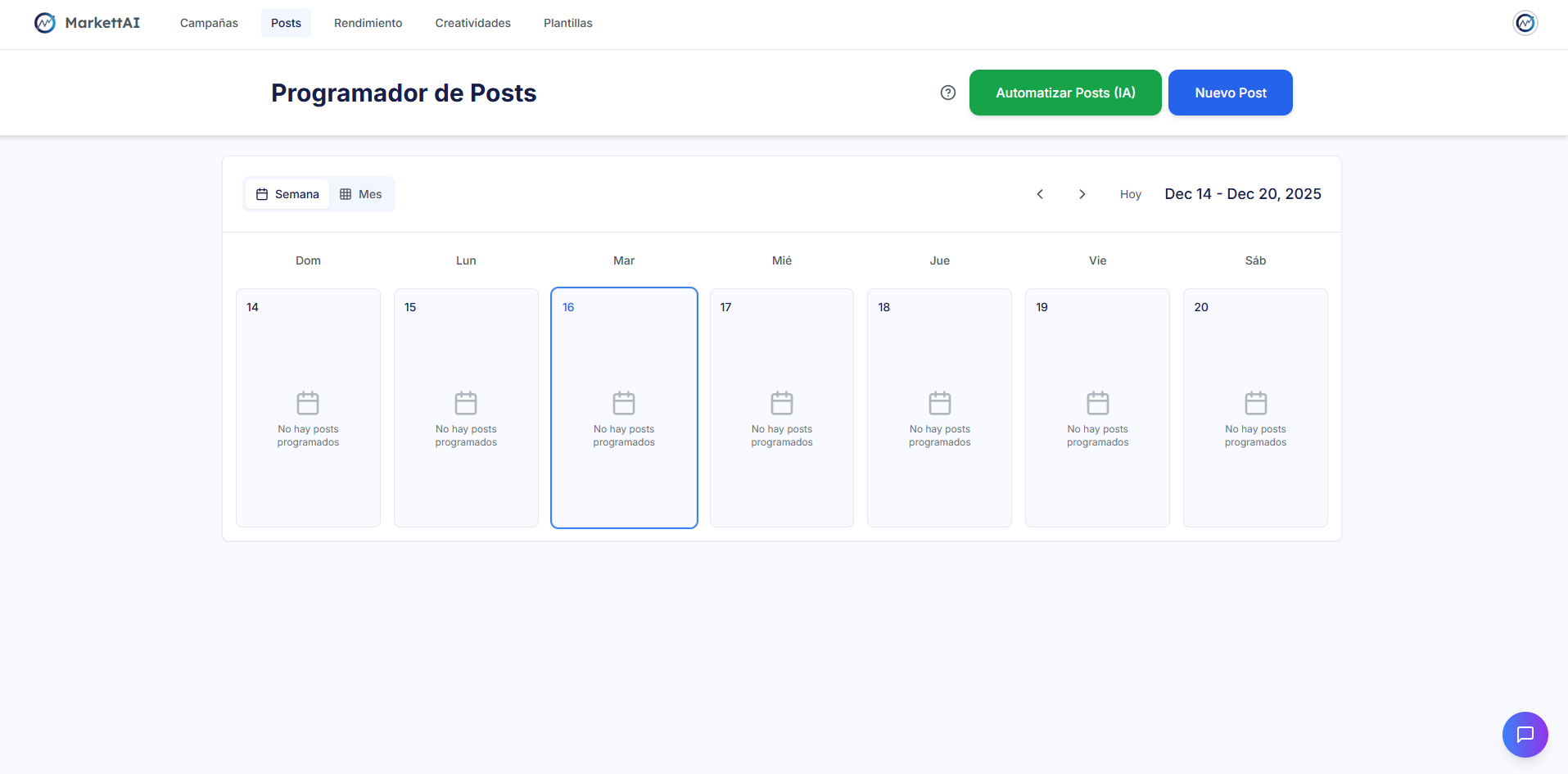 The Total Delegation Mode converts the Content Calendar into a supervisory tool. The AI will always keep the calendar occupied with optimized publications without the need for intervention.