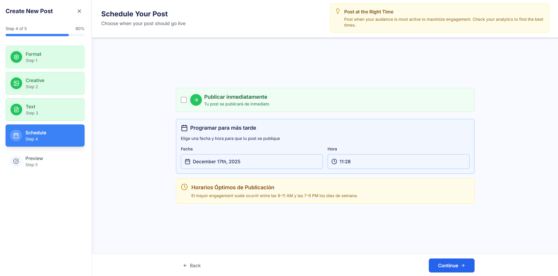 Define when the post will be published to maximize engagement.
